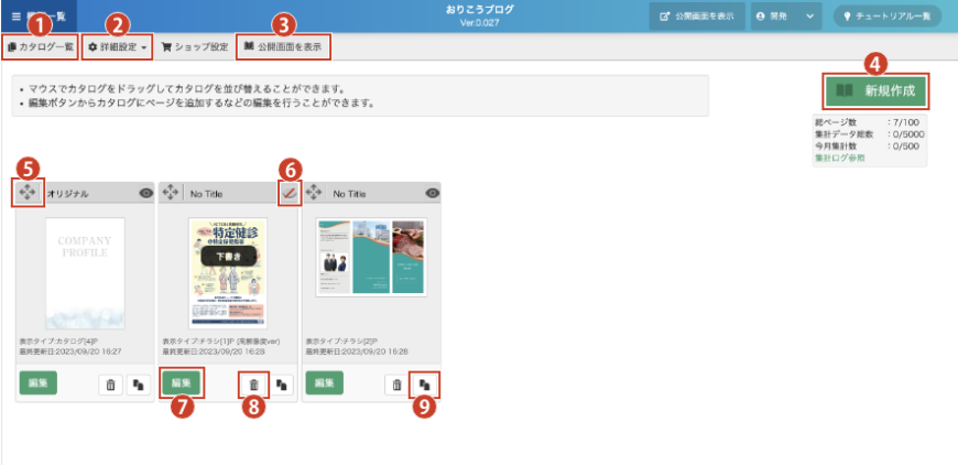 「公開」又は、公開画面に表示されない「下書き」の状態に切り替えることができます。