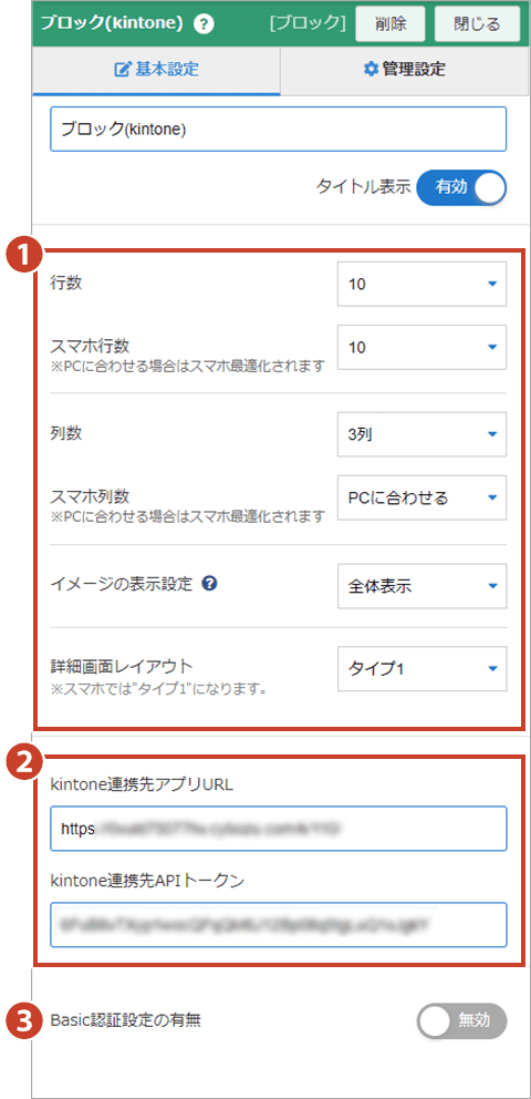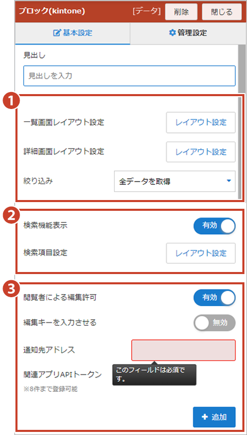 ブロック表示(kintone連携ブロック)