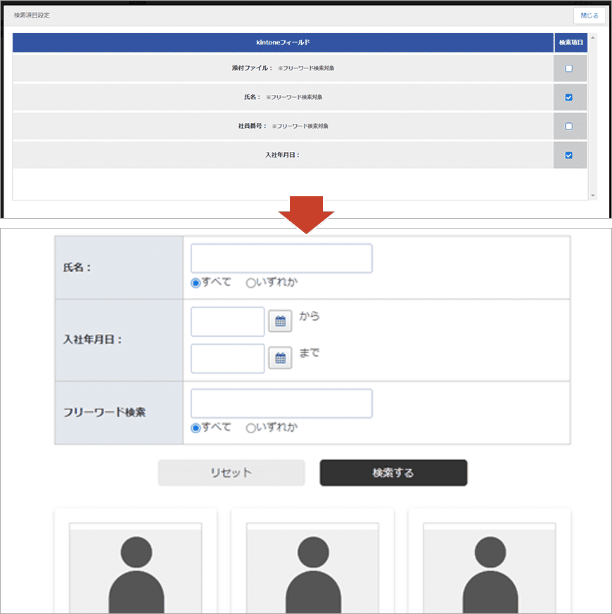 *kintone側で検索が不可となっている項目は、検索項目として設定することができません。