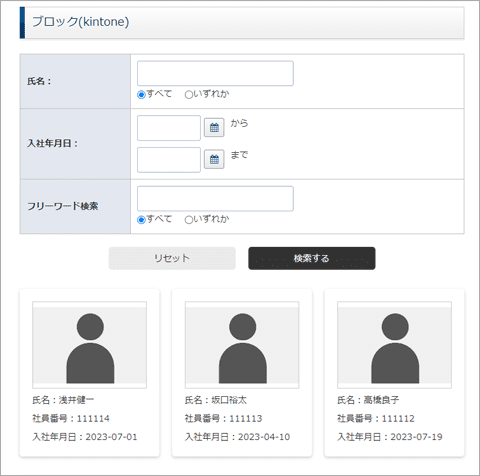 ブロック表示では、連携しているデータを任意の項目から検索する「検索機能」を設定することができます。