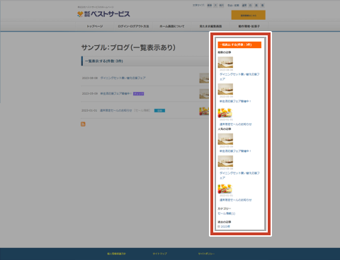 新しく作成された順に、設定した表示件数(3件または5件)の記事が表示されます。