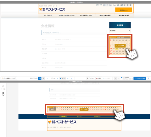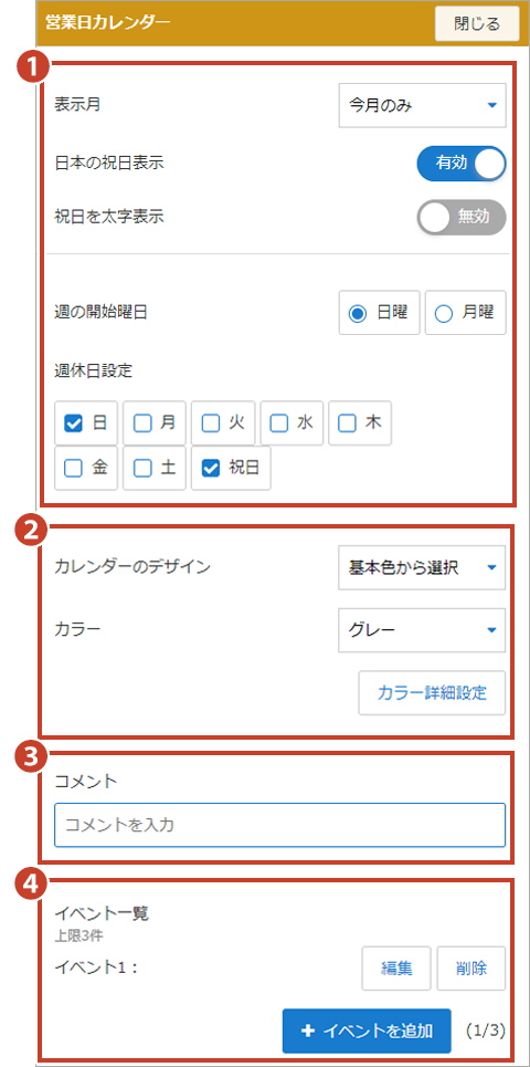 カレンダーのカラーを「基本色から選択」、「個別で色選択」から選び、設定を行えます。
