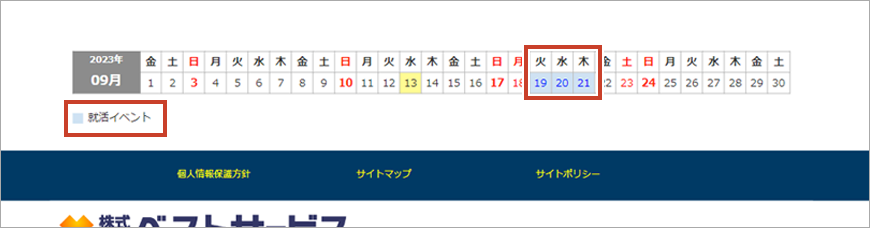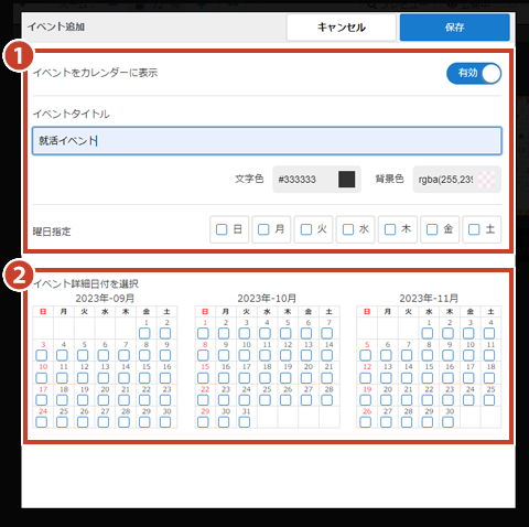 イベントの登録を行えます。登録したイベントはカレンダーに表示されます。