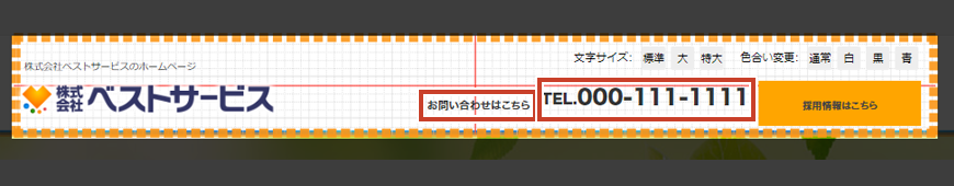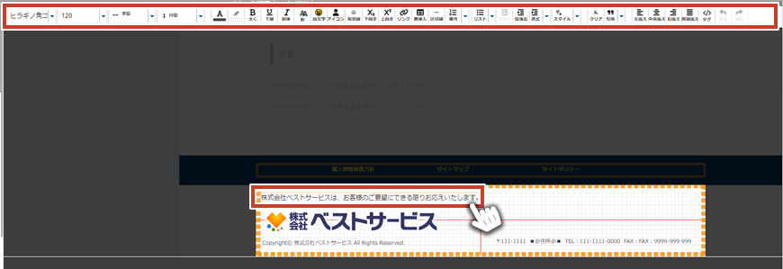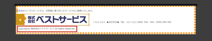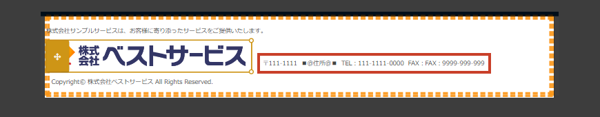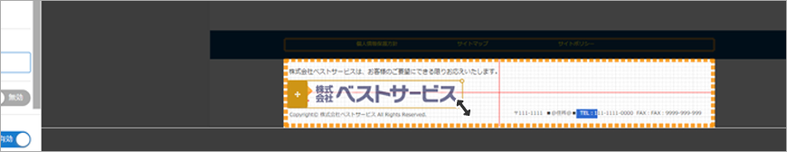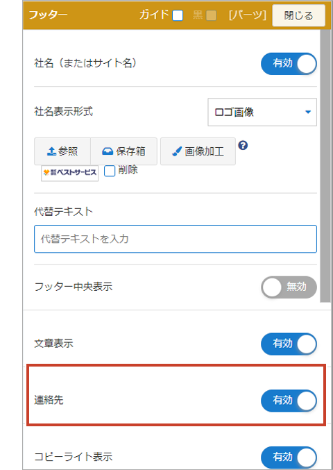 連絡先を"有効"に設定すると、フッダーエリア内に連絡先を表示します。