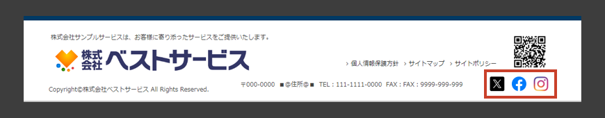 お客様が利用しているSNS(ソーシャルメディアサービス)への、リンクアイコンを設置します。