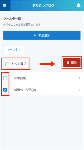 フォルダ一覧画面では、フォルダの新規追加、削除が行えます