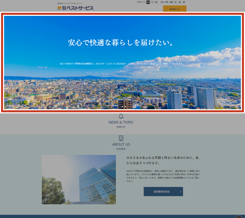 掲載ページを"トップページのみ"にすると、トップページ以外のページではヒーローヘッダーが表示されなくなります。