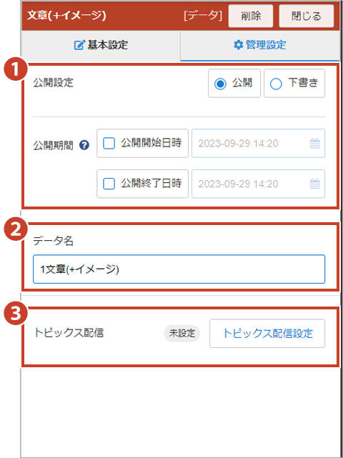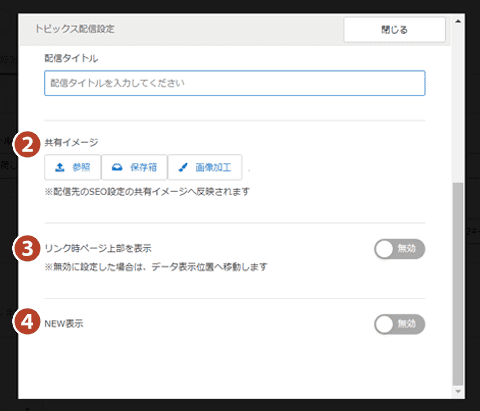 トピックスブロックへ配信した際に、NEWアイコンを表示するか選択できます。