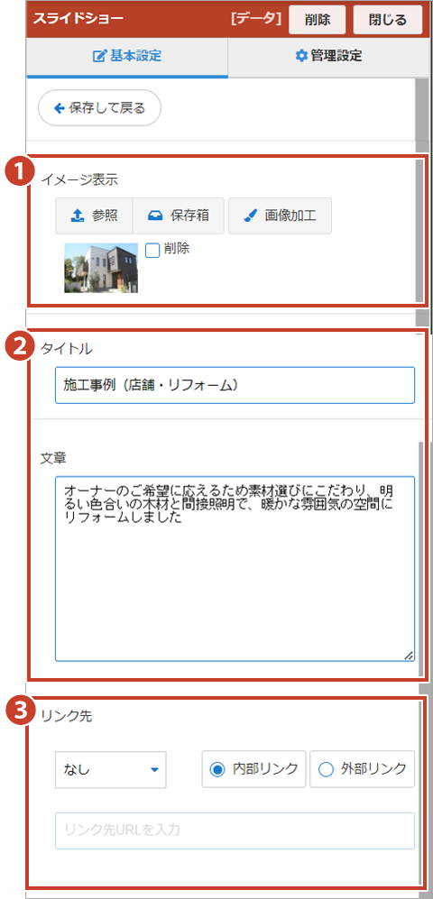 表示される画像をクリックすると、他のページへ遷移するリンクを設定できます。