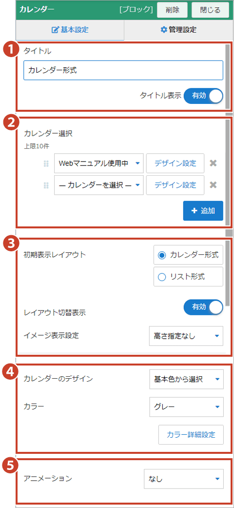 表示するレイアウトを "カレンダー形式""リスト形式"から設定します。