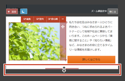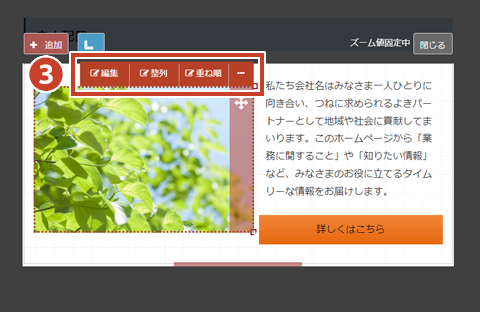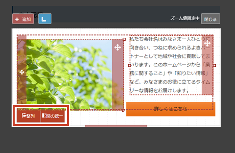 配置した各コンテンツにカーソルを合わせると、上部に操作メニューが表示されます。行える操作は下記の通りです。