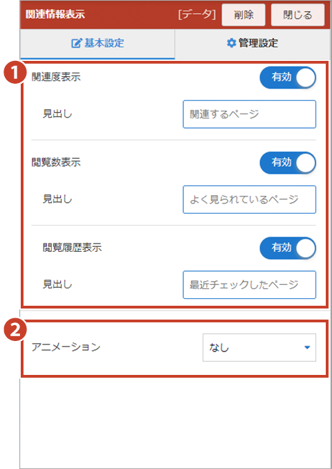 ②カルーセル表示設定
