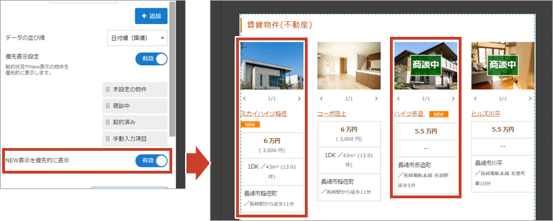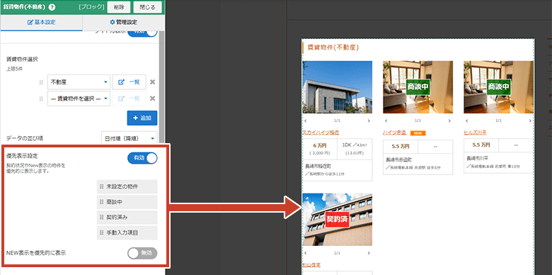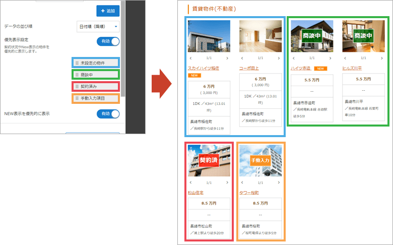 データに設定している ”契約状況” で優先的に表示させる順番を設定します。詳しくはこちら
