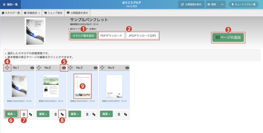 パンフレット作製機能やアップロード機能でページの追加を行えます。