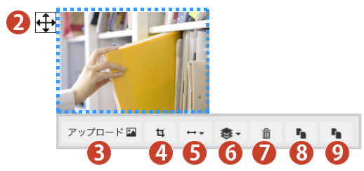 画像要素をクリックして内容を編集したり点線枠の右下をドラッグすることで