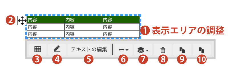 表組要素をクリックし、点線枠の右下をドラッグすることで、