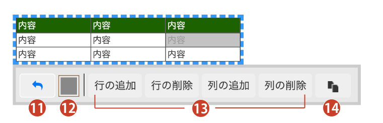 「行の追加」・「行の削除」、「列の追加」・「列の削除」を行います。