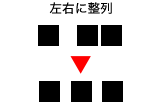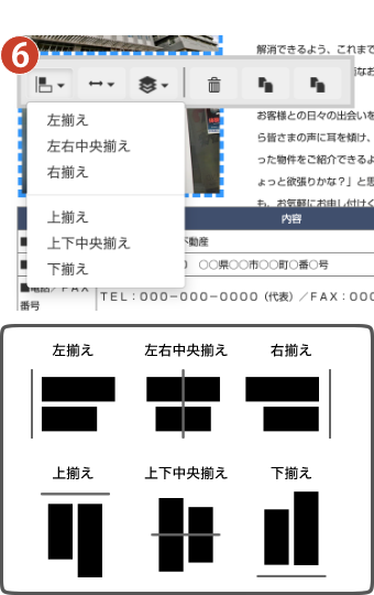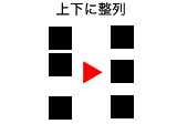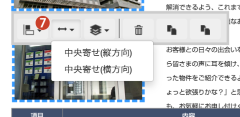 - ⑦整列機能を使用することで、複数選択中の要素を等間隔に整列させたり、紙面の縦又は横軸の中央に配置する事が出来ます。