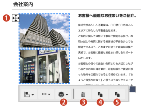 テキスト・画像・表組の要素をキーボードの「Shiftキー」を押しながらマウスでクリックする事で、複数の要素を同時に選択する事が出来ます。複数選択時には、専用の機能メニューが表示されます。