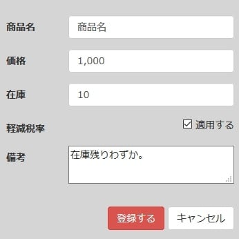 - 商品登録フォームにて、商品名と金額、備考を登録します。