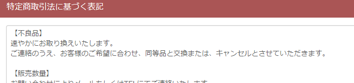 - 特定商取引法に基づく表記は、公開画面の購入手続き画面の詳細情報で表示されます。