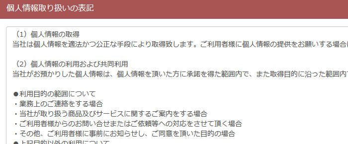 個人情報取り扱いの表記の編集