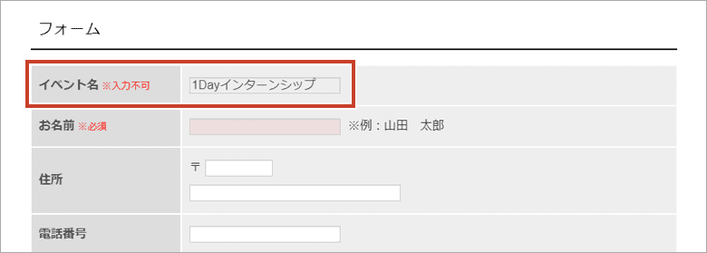 画像内では、イベント名(テキストフォーム)に「入力不可」を設定