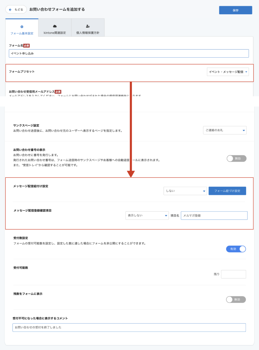 上記の紐づけ設定を完了後、再度【保存】ボタンをクリックすると、設定が完了です。