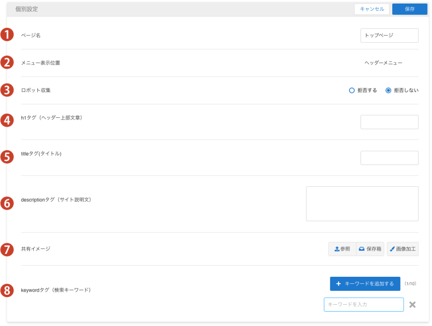 "個別設定"では、特定のページだけに適用させるSEO設定が行えます。