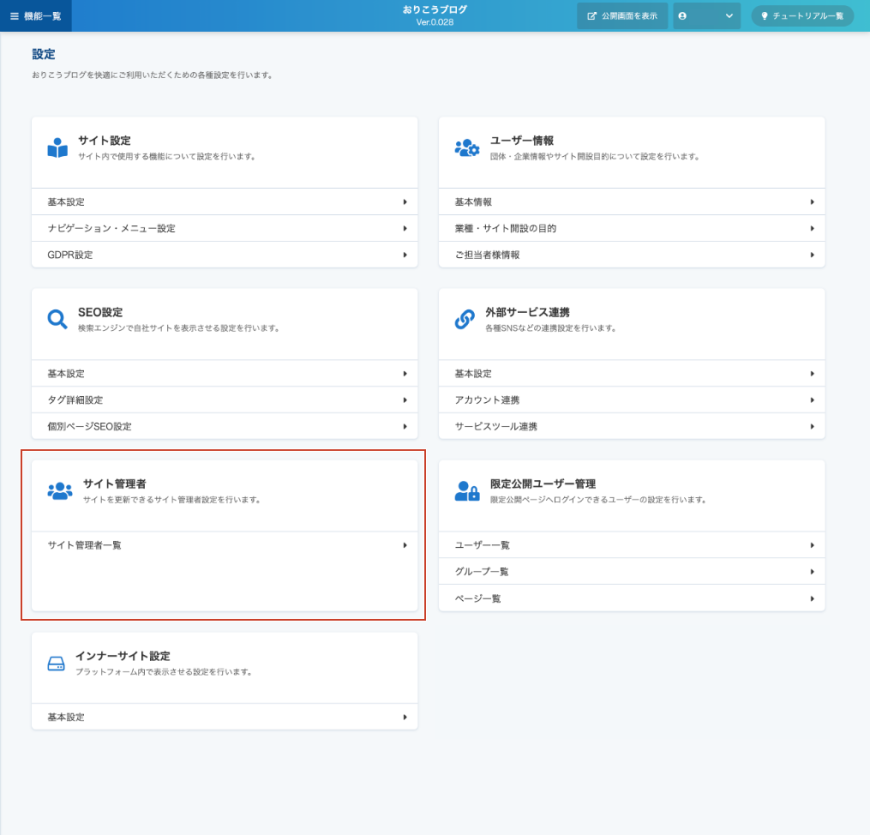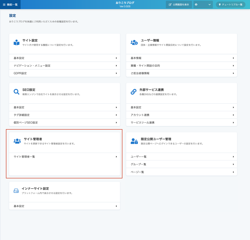 (!)ご注意 >"サイト管理者設定"機能は、有償オプションです。ご利用になるには、機能追加のお申し込みが必要です。 |