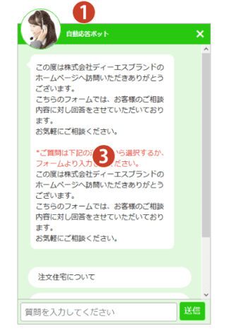 ③初回メッセージ………チャットボットに表示する最初のメッセージを入力できます。