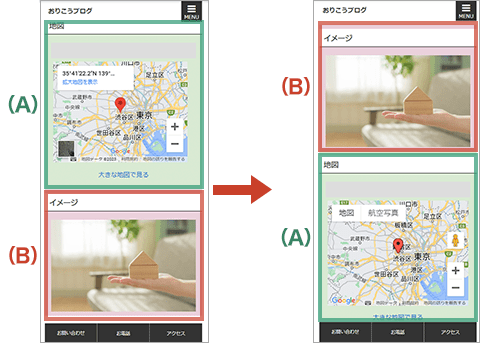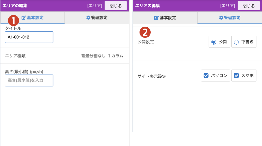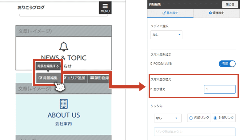 - スマホ並び替え…エリアの並び替え指定を行えます。操作方法はこちら