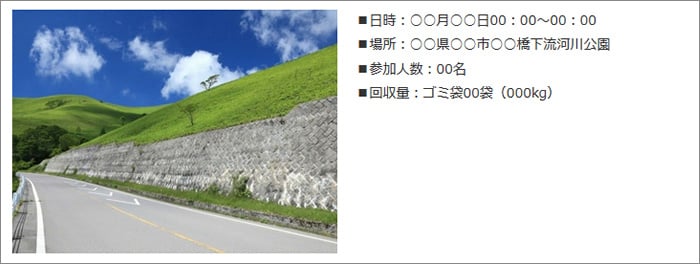 このコンテンツではイメージと文章を横並びに配置した"リスト"型のレイアウトでコンテンツが表示されます。