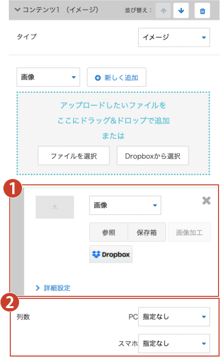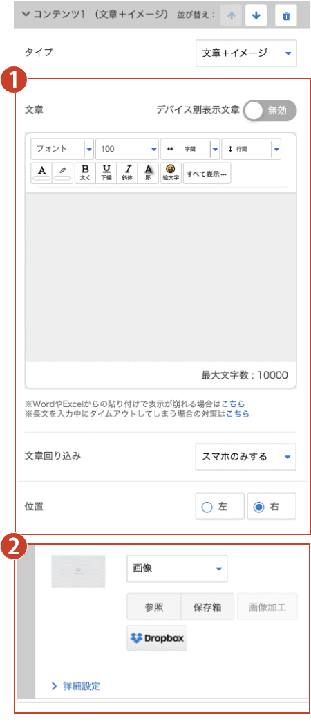 文章+イメージでは、各1ずつのイメージと文章を登録できます。