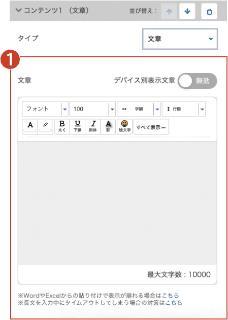コンテンツの設定欄は、上記で選択したタイプによって異なります。