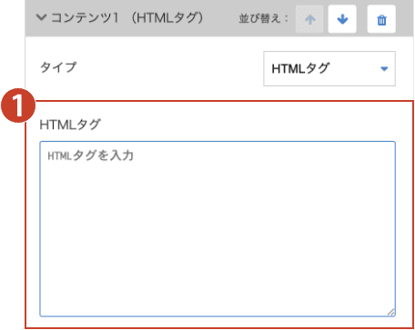 "HTMLタグ"の欄にソースコードを貼り付けます。