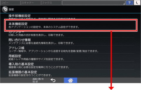 | 複合機の型式によっては、設定方法が異なる場合がございます。 基本的には類似した方法で設定が行えますが、ご不明な点がございましたら、お手数ですが下記のサポートセンターまでお問い合わせください。 |