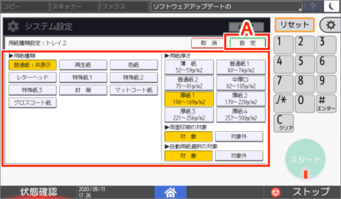 適した用紙(用紙の厚さ)に変更し、設定が完了します。
