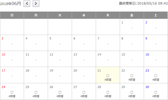おりこうブログ×ほのぼのNEXT 空き状況カレンダー(サンプル)
