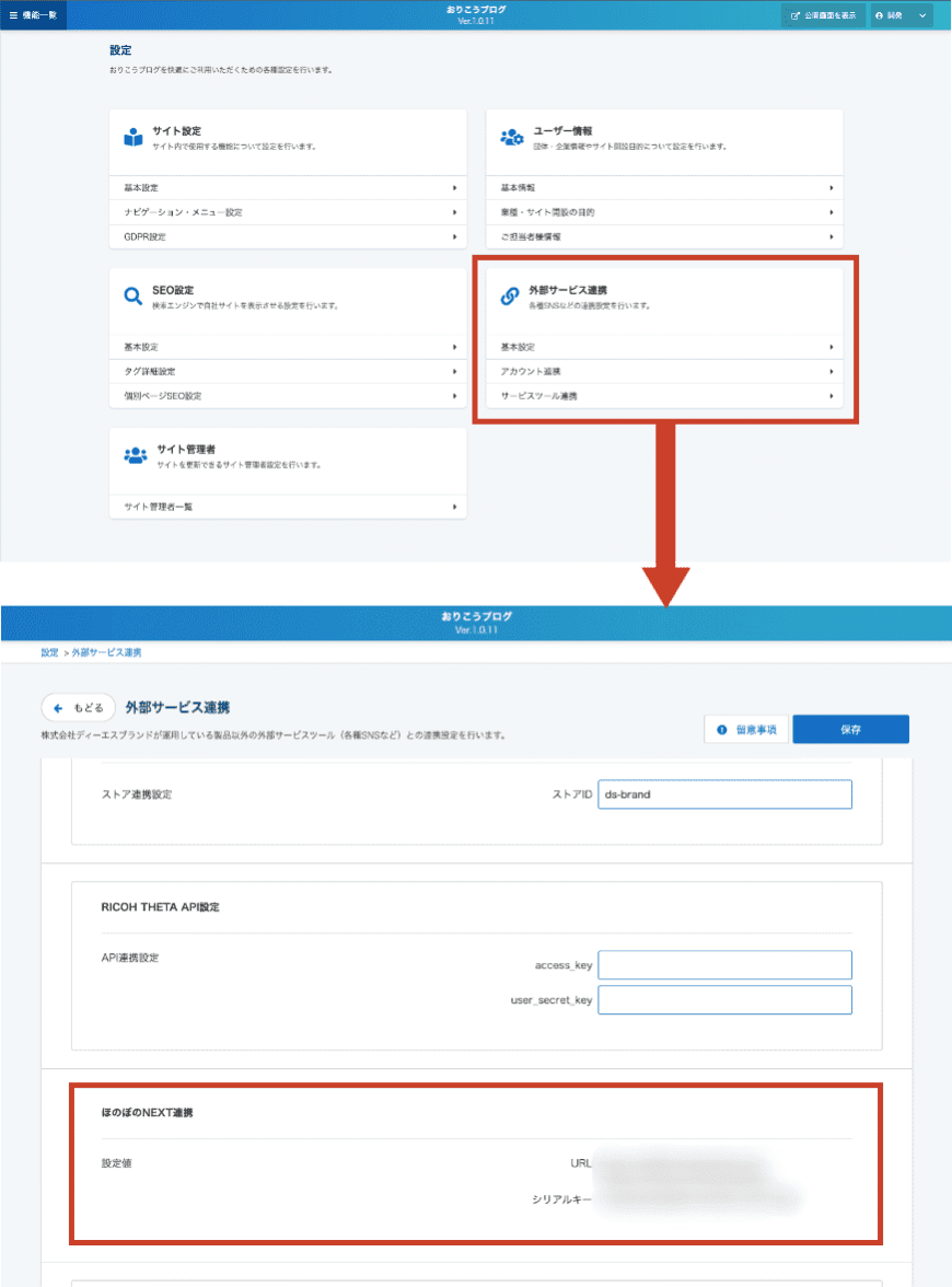 【STEP1】外部サービス連携設定でほのぼのNEXT設定値の確認をする