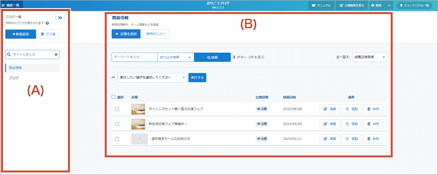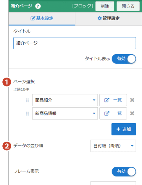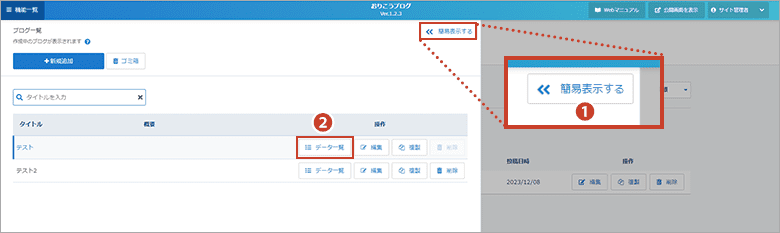 データ管理画面(データストック系ブロック)