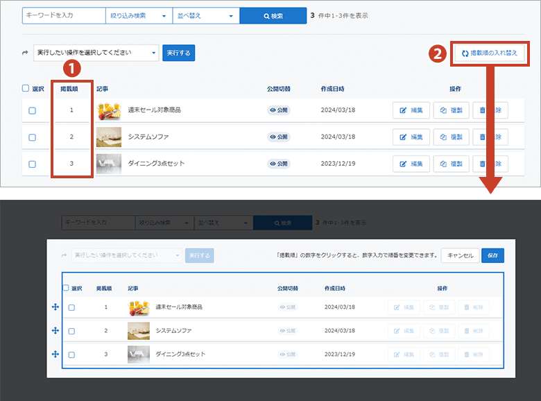③タイトル検索 … キーワードを入力してタイトルを検索できます。