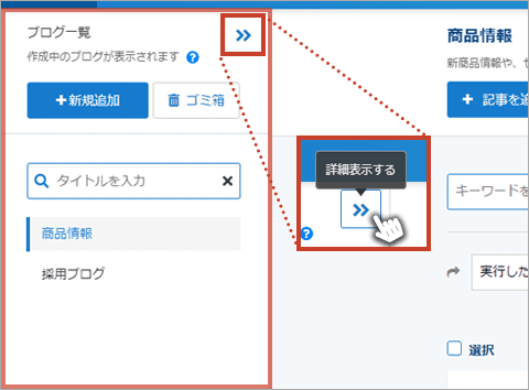 データストック管理画面では、各データストックの新規追加や削除などの操作に加えて、登録数が多い場合にも操作しやすい「簡易表示/詳細表示」の切り替えが行えます。