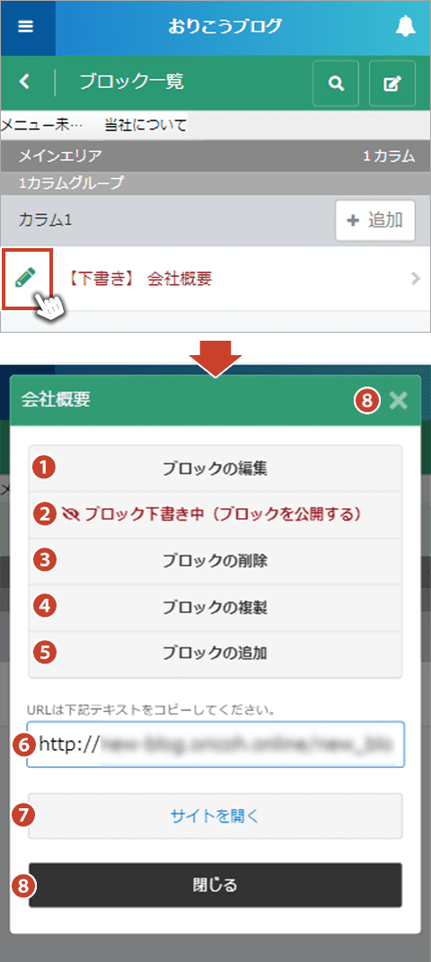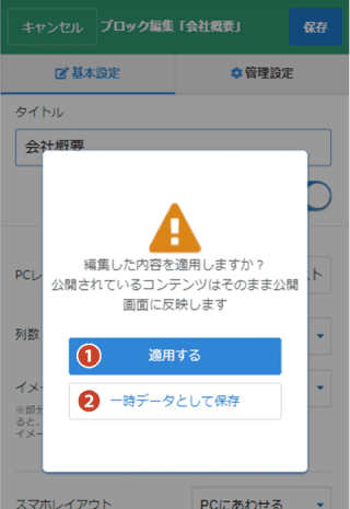 タップすると編集画面が表示されます。*各ブロックの設定内容についてはこちら