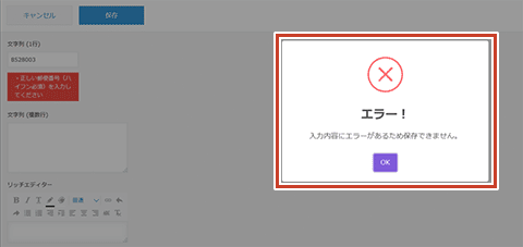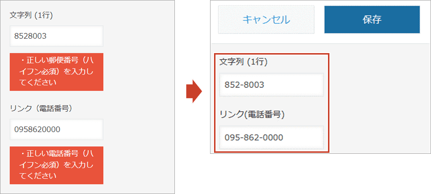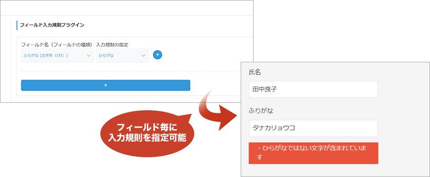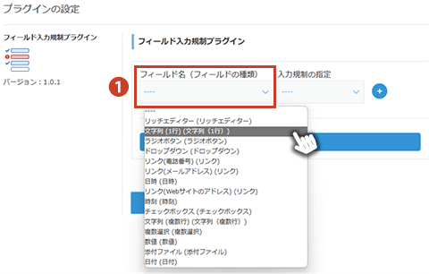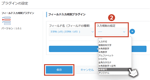 ③「入力規制の指定」を追加 | ②入力規制の指定 を追加し、一つのフィールドに入力規制を複数設定できます。 |