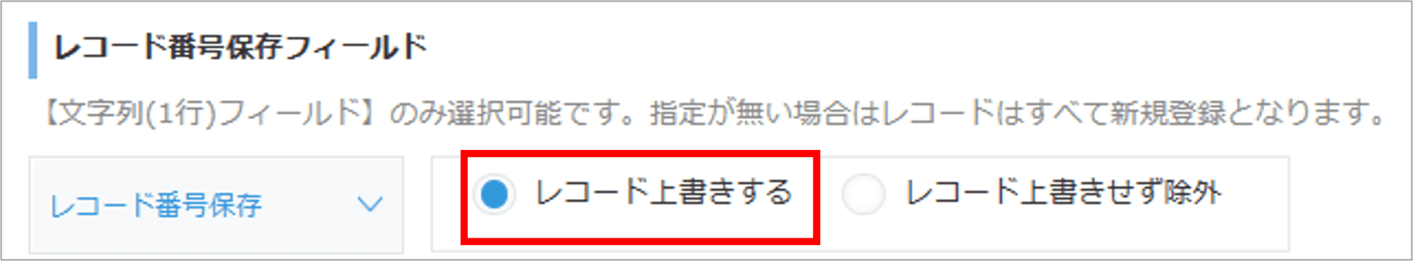 ③レコード番号保存フィールド | レコード番号の保存に関する各種設定が行えます。