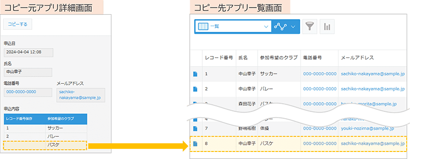 イベント申込期間中に、途中結果で集計を行うためにテーブルデータコピーを実施した。その後、申込内容に変更があったため、コピー元アプリよりデータの変更を行っている。