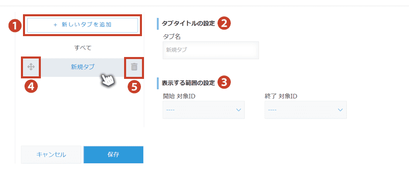 ②タブ名 | 任意でタブのタイトルを設定できます。※入力できる文字数制限は10文字 |