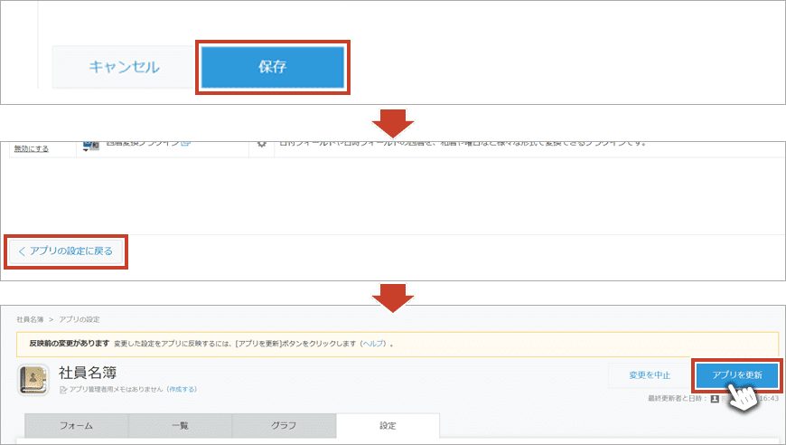 プラグイン設定前に、アプリのフォーム設定を行う必要がございます。