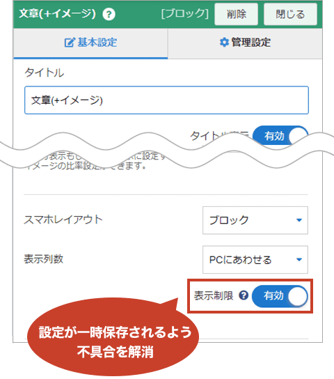 【文章(+イメージ)ブロック】"表示制限"を変更後、一時保存されない現象